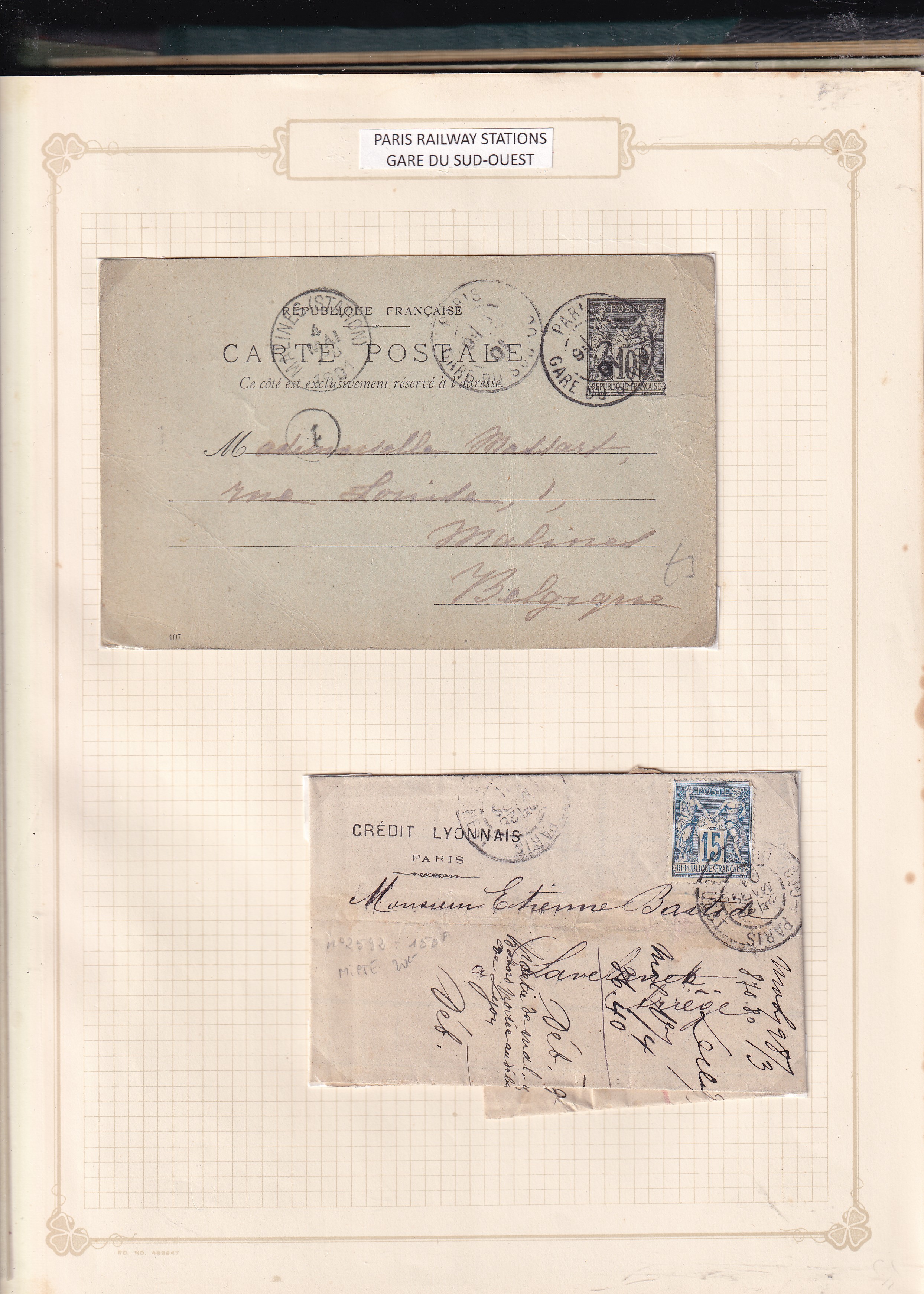 A selection of cancellations linked to the French railway network, including convoyeur and ligne handstamps applied in travelling post wagons, bureau ambulants used on mobile mail-sorting offices, and datestamps from major Paris stations. These markings illustrate how mail was handled, sorted, and dispatched across the rail system from the mid-19th century onward.